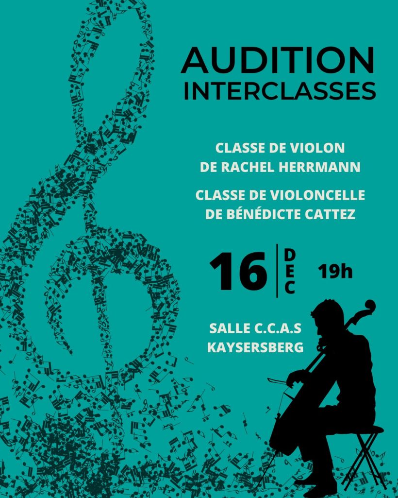 AUDITION INTERCLASSES VIOLON/VIOLONCELLE avec les classes de Rachel Herrmann et Bénédicte Cattez :