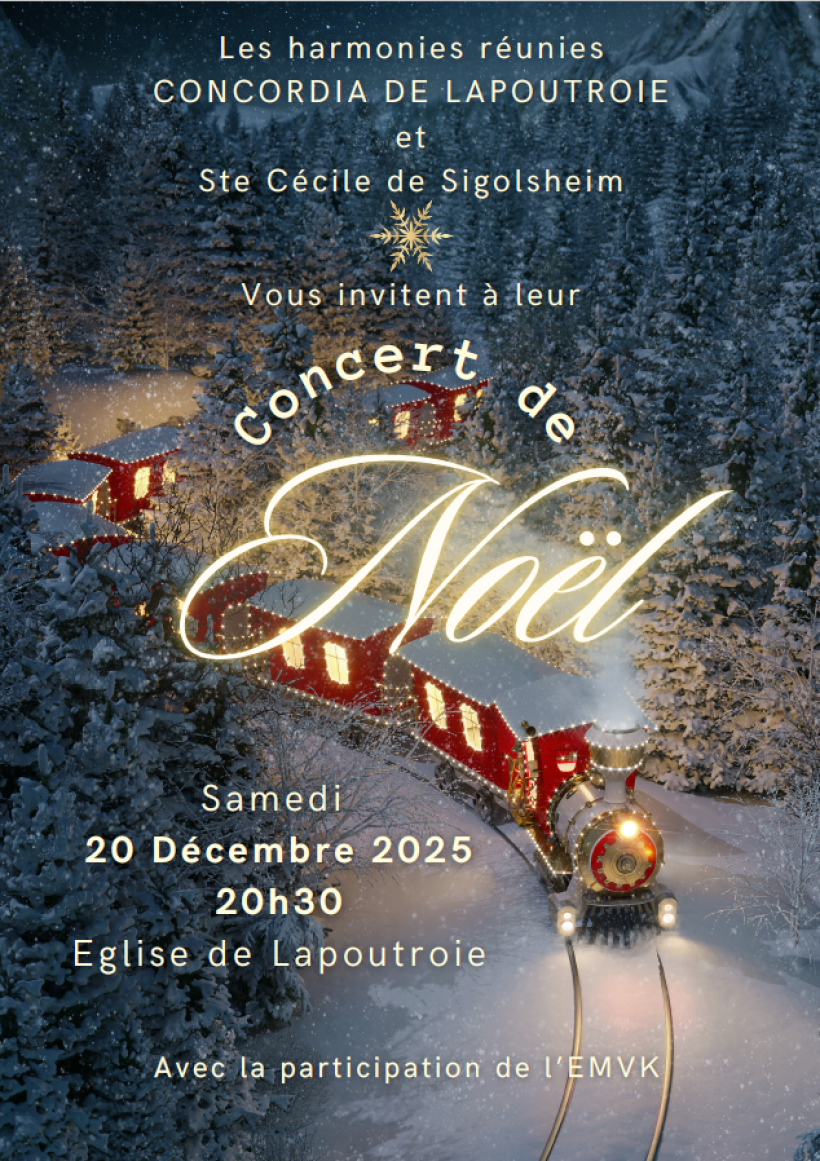 Les harmonies réunies Concordia de Lapoutroie et Sainte Cécile de Sigolsheim vous invitent à leur Concert de Noël.